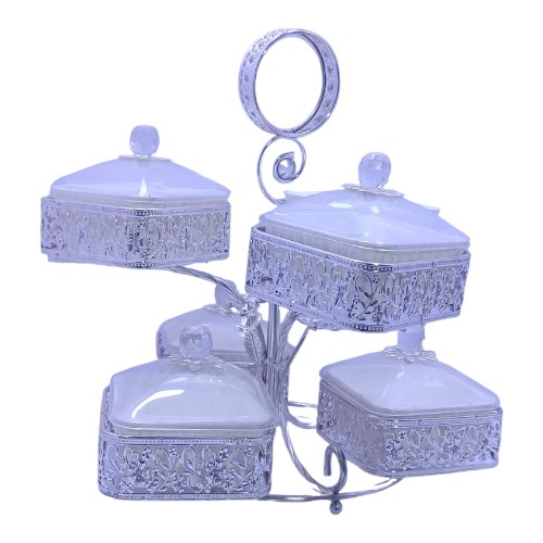عرض خصم - شيالة حلويات ذهبي+فضي 3خانات 38/947