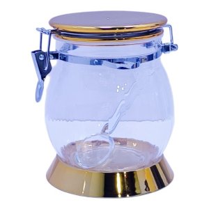 برطمان اكرلك شفاف غطاء قفل ذهبي مع ملعقه موديل 25-6-1116