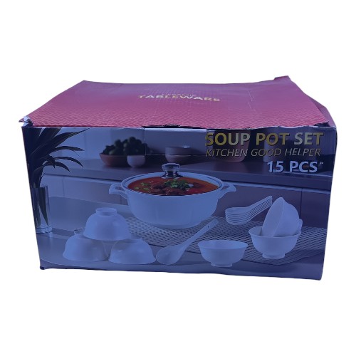 طقم مطايب شربة سيراميك 15قطع غطاء زجاج موديل 529-6-25