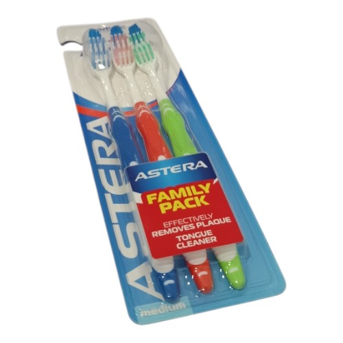 فرش اسنان استيرا اكتيف تريو طقم 3 حبات شعيرات متوسطة