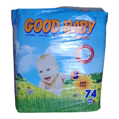 حفائض جود بيبي للاطفال رقم 3 وسط عبوة 74 حبة