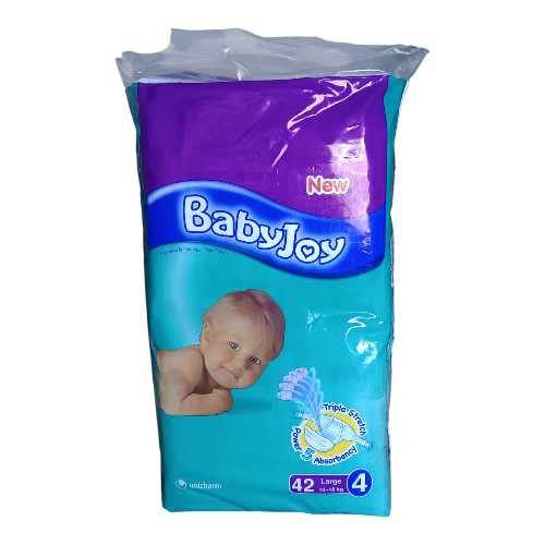 حفاظ اطفال بيبي جوي ميجا سترتش ثلاثي كبير رقم (4 ) 42حبة