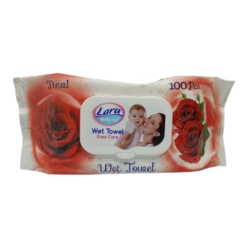 مناديل مبللة لارا للاطفال بلورد احمر 100قطعة